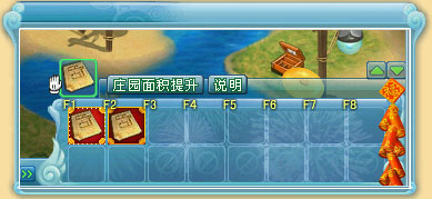 点选后,系统会回收升级物品。在背包栏会出现“庄园面积提升道具”