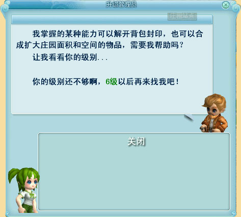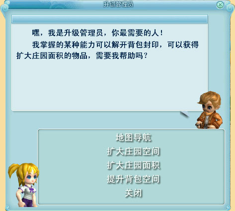 当人物级别达到6级或以上,可以到城镇上寻找升级管理员升级庄园空间,升级管理员会给出升级条件提示。